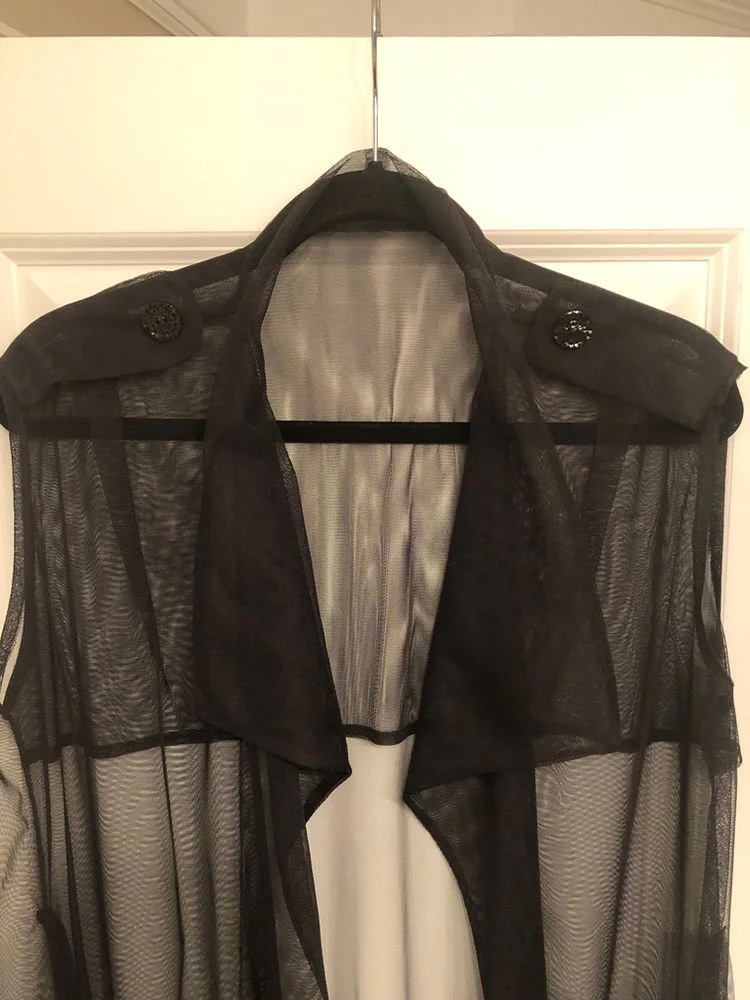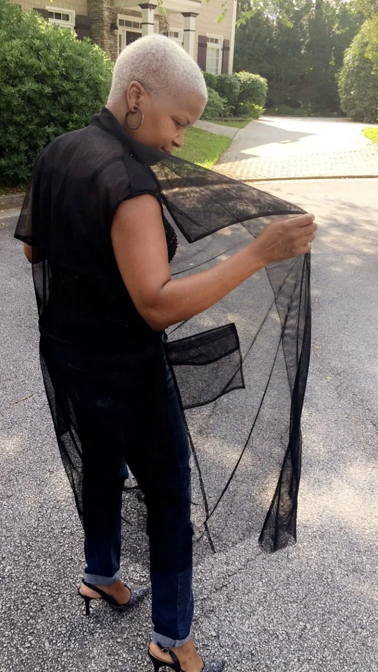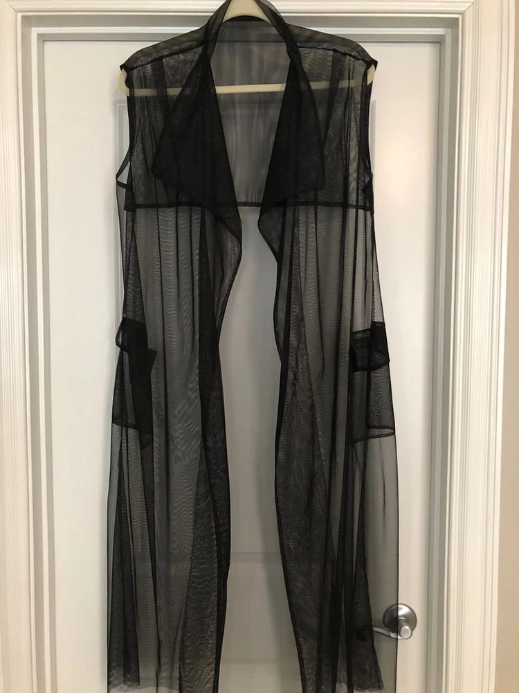Sewing mesh fabric has a true learning curve and be patient when doing it for the first time, especially if you're making a garment that's traditionally made with a common woven or knit. The first thing I realized about sewing see-through fabrics means you have to sew/design for the inside and outside at the same time. Every seam you sew has to be sewn for function and design. A friend also reminded me of this about pockets: sew the pockets designed with intention that they are supposed to be there, instead of hidden and oops! I can see it. Be intentional with every seam and design feature like pockets, plackets, buttons, cuffs, etc. You want the inside to be admired just as much as the outside.