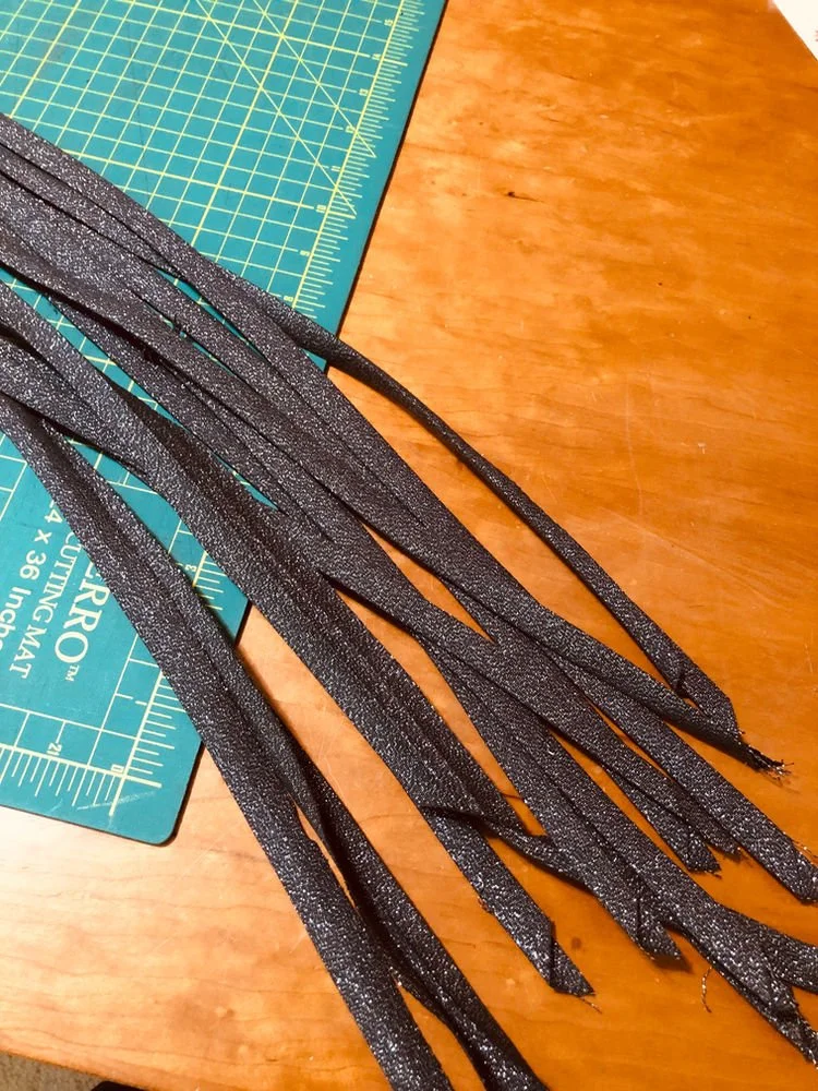 The bias strips down the sides were made from a fabric we carry at Topstitch Studio: Glimmer Solid (black). From 1 yard of fabric, you can cut 18 yards of 1” bias strips. It was a tedious task, but certainly worth it. The bias strips were easy to iron and stitch onto the dress sides and shoulders. I learned all of this after shopping for the right size ribbon - 1/2” ribbon doesn’t exist and nothing I saw gave me the right color and feel of the Glimmer Solid fabric I got from Topstitch. AND, no need to use any kind of stitch witchery or tape to keep the strips in place while sewing - pins work best.